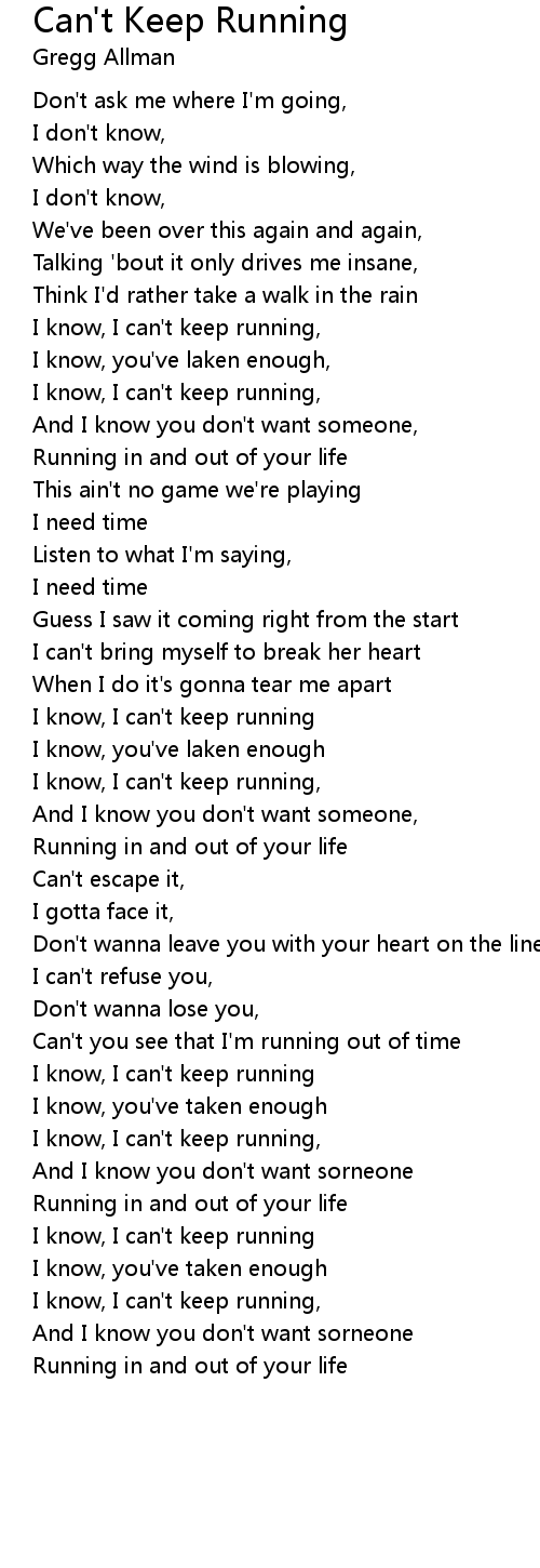 I know, I can't keep running |
