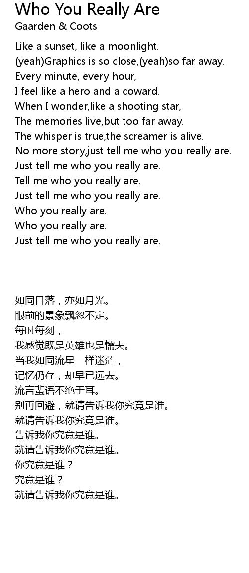 No more story,just tell me who you really are. |