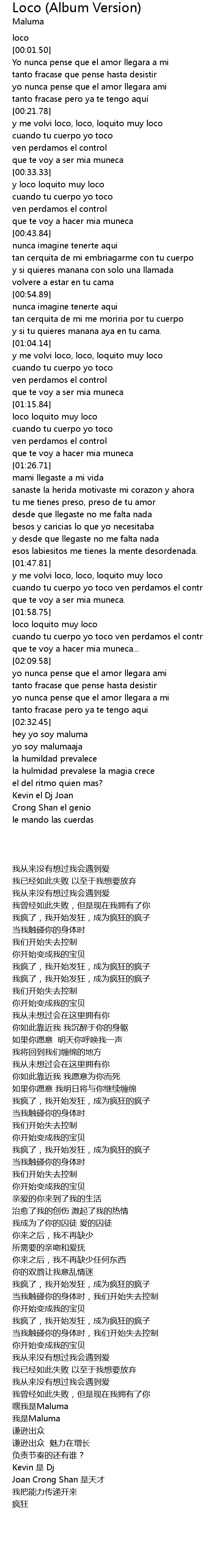 | [00:22.09] | y me volvi loco, loco, loquito muy loco |