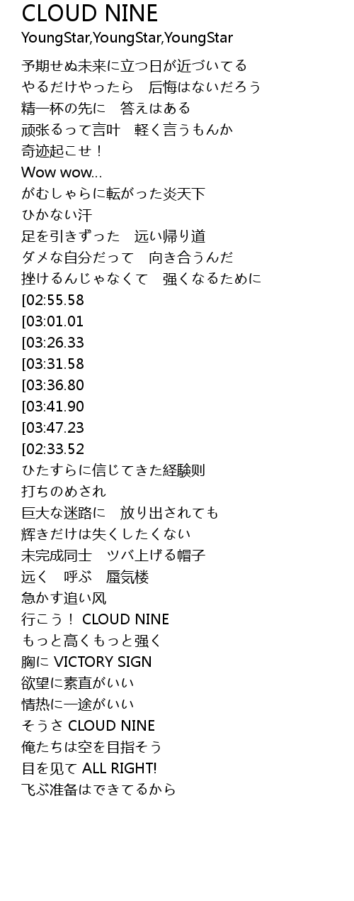 | [02:08.84] | 行こう! CLOUD NINE |