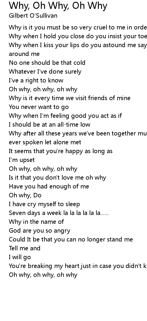 Why after all these years we've been together must you behave as if we'd hardly ever spoken let alone met