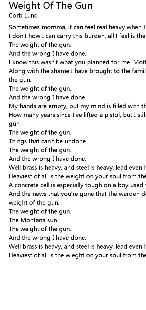 And the news that you're gone that the warden delivered, makes me long for the weight of the gun. |