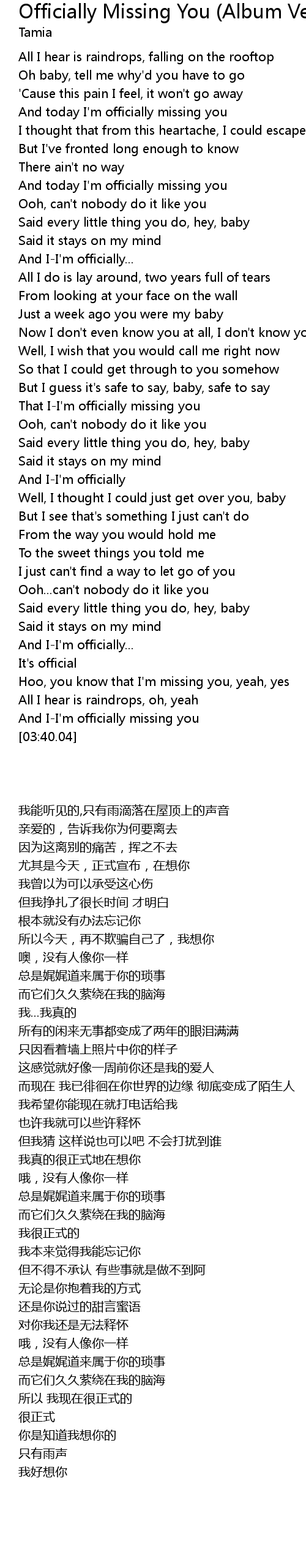 That I-I'm officially missing you |