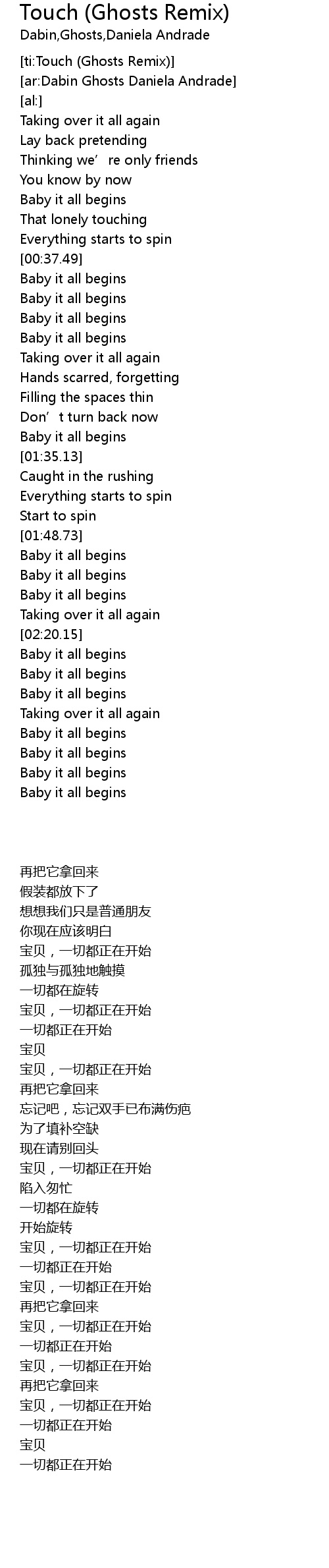 | [02:09.64] | Baby it all begins |