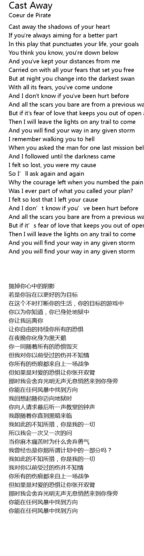 | Song | Cast Away |