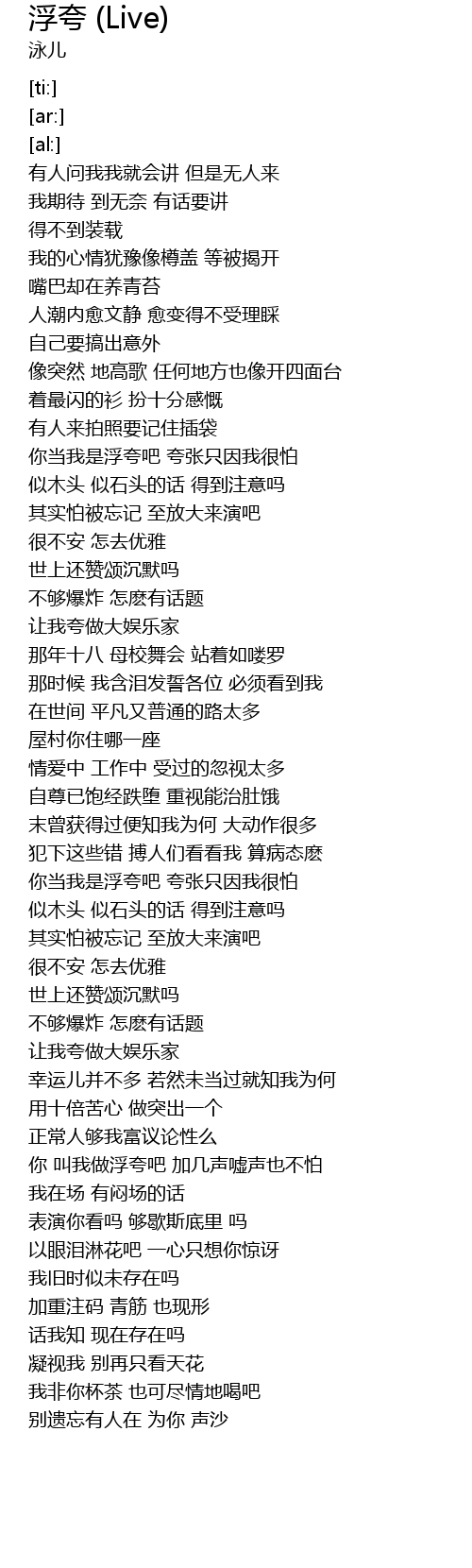 | [00:58.37] | 你当我是浮夸吧 夸张只因我很怕 |