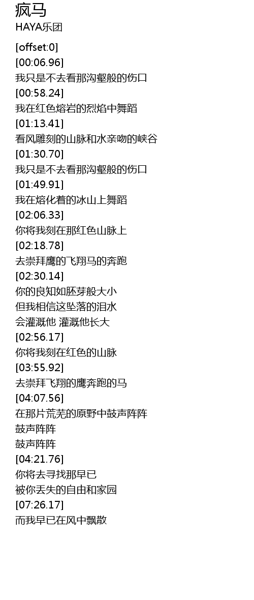 | [03:59.27] | 去崇拜飞翔的鹰奔跑的马 |