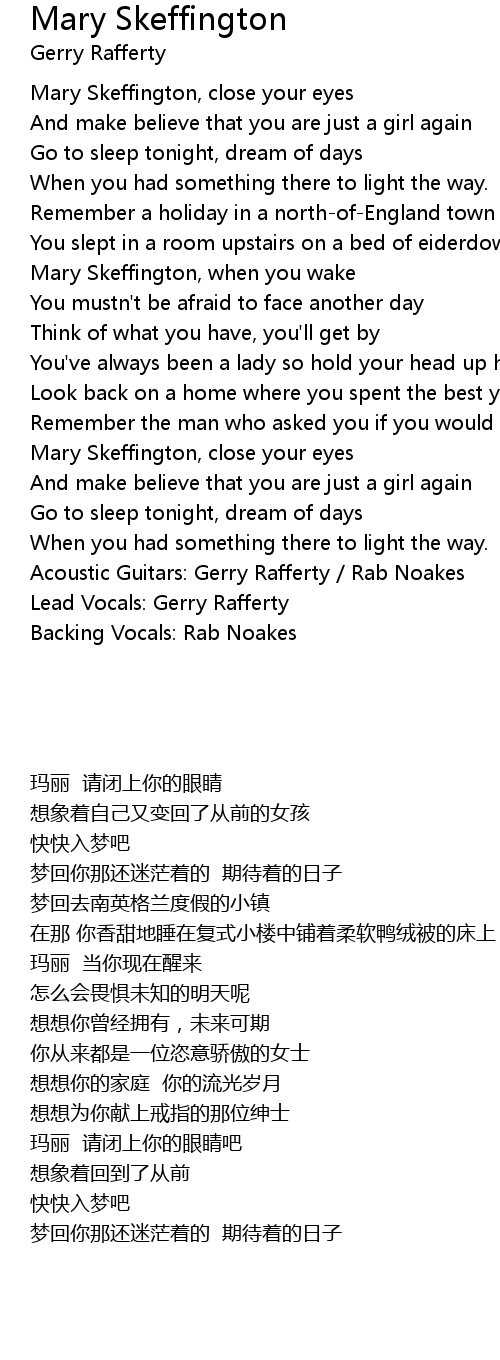 Mary Skeffington, close your eyes |