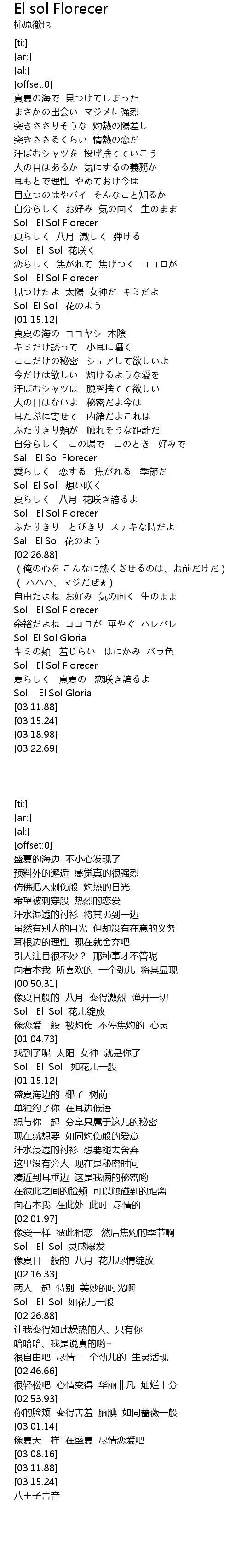| [00:57.48] | Sol El Sol 花咲く |