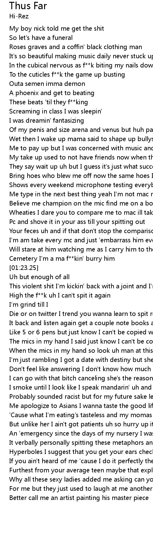 High the f**k uh I can't spit it again |