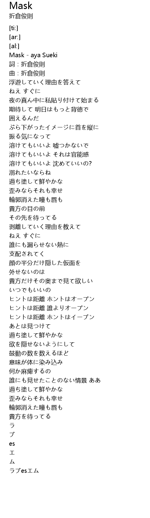 | [01:38.30] | 顔の半分だけ隠した仮面を |
