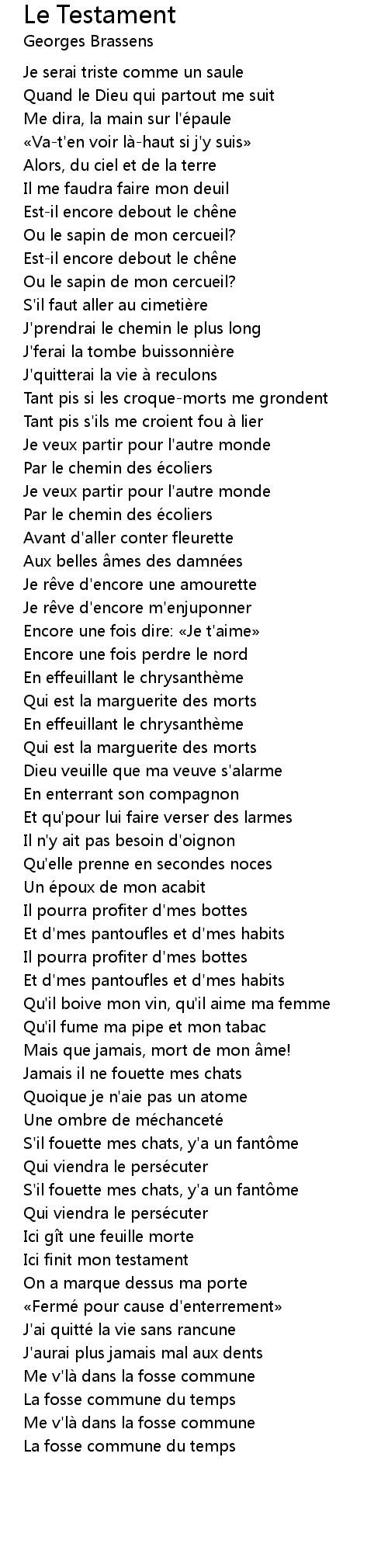 | Song | Le Testament |