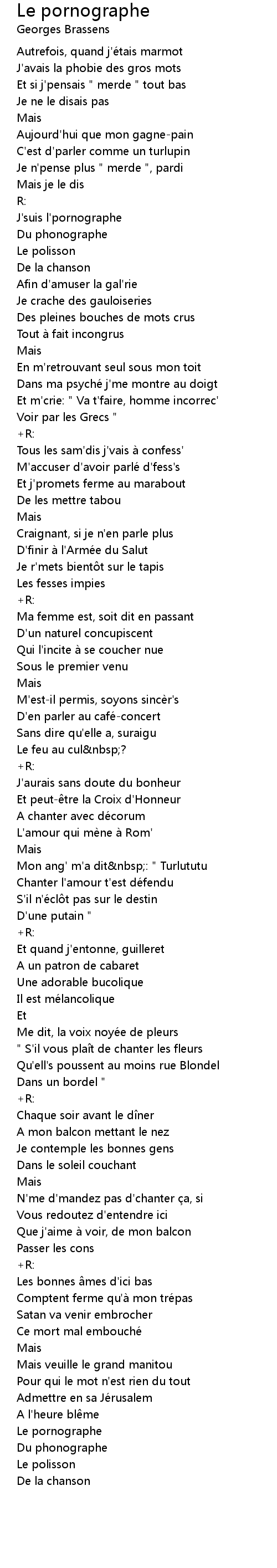 | Song | Le pornographe |
