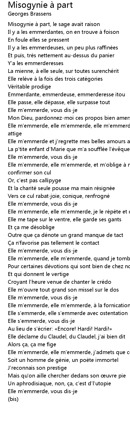 | Elle m' emmerde, elle m' emmerde, elle m' emmerde, elle m' emmerde, elle abuse, elle attige | |