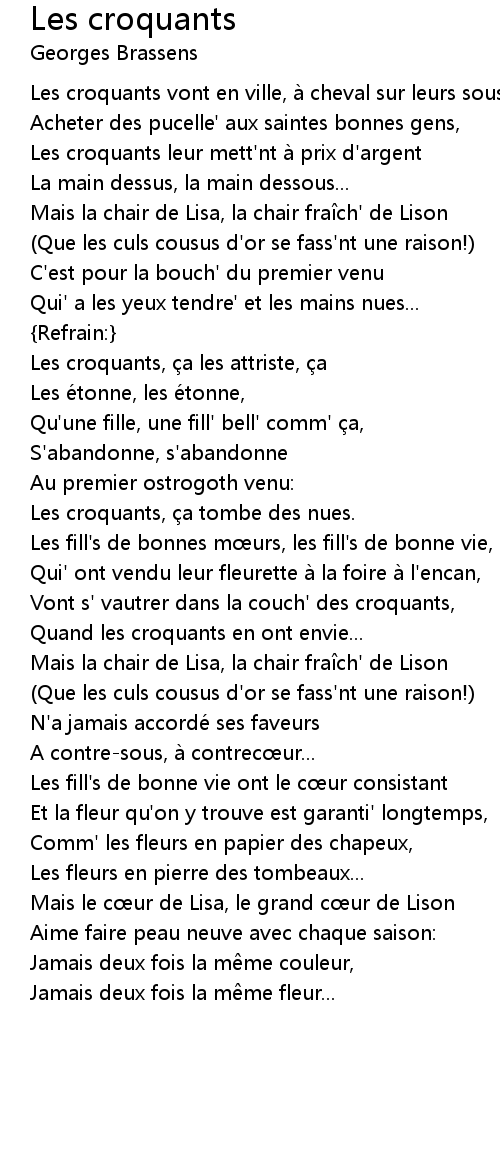 | Mais la chair de Lisa, la chair fraîch' de Lison | |