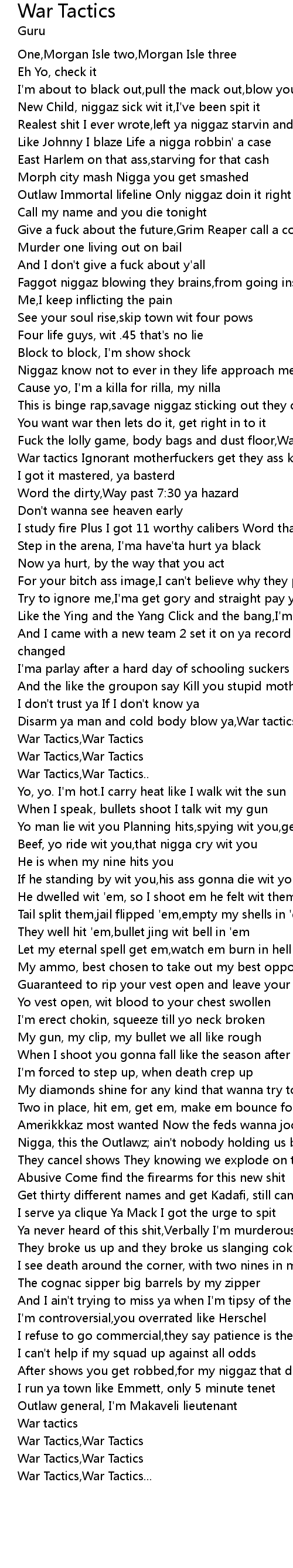 Fuck the lolly game, body bags and dust floor,War tactics |