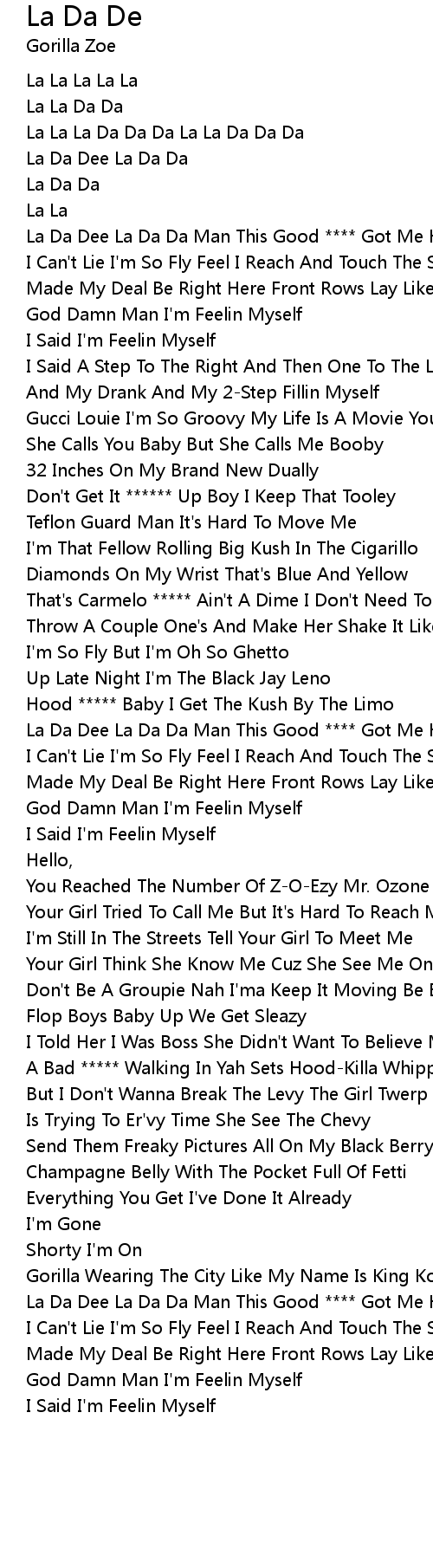 La Da Dee La Da Da Man This Good **** Got Me High |