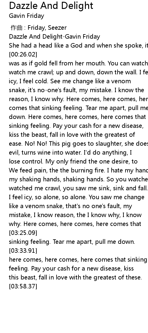 | [00:00.77] | Dazzle And DelightGavin Friday |