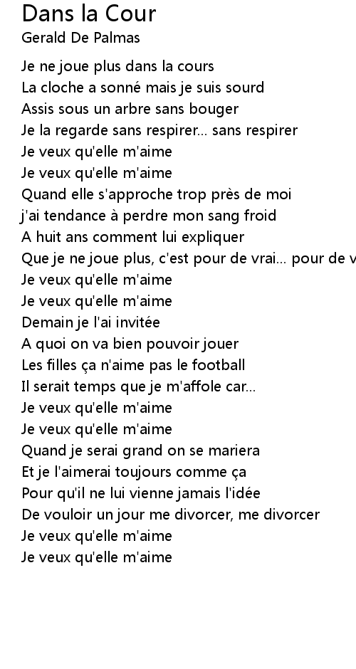 | Song | Dans la Cour |