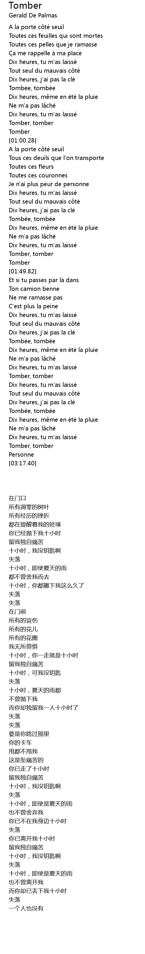 | [01:41.38] | Tomber, tomber |