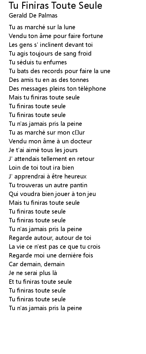 | Et tu finiras toute seule | |