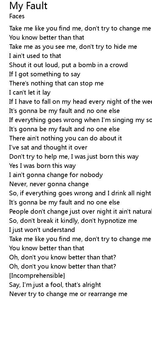 It's gonna be my fault and no one else |