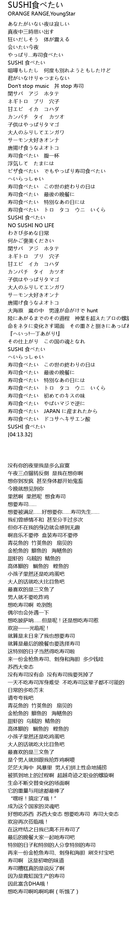 | [03:33.86] | 寿司食べたい JAPAN に産まれたから |