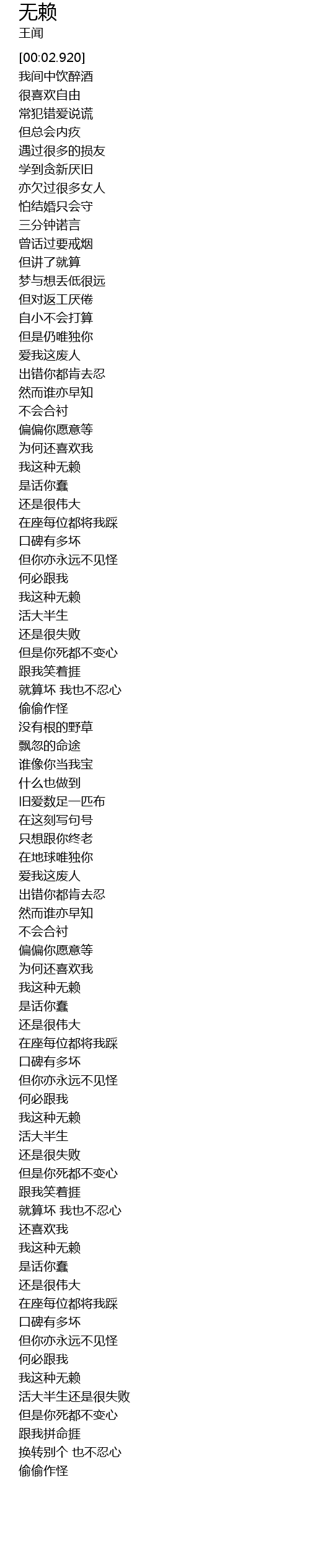 | [01:35.570] | 我这种无赖 |