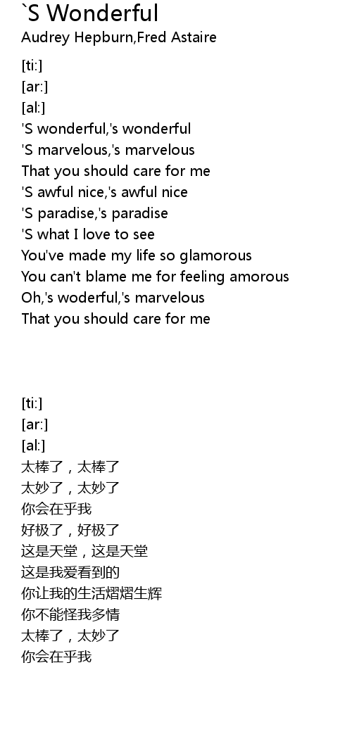 | [00:58.33] | Oh,'s woderful,'s marvelous |
