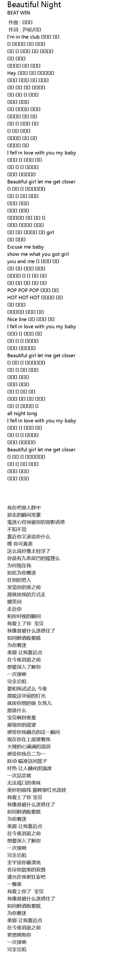 | [00:01.00] | 作词 : 尹侯/정하 |