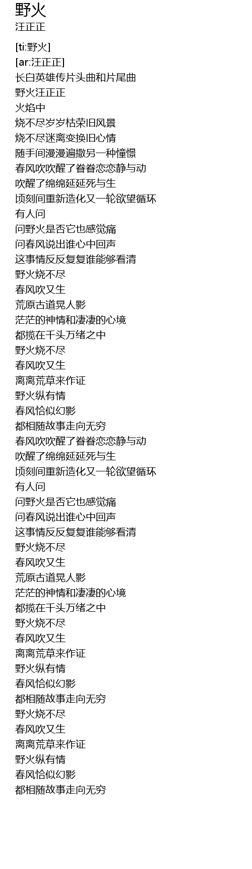 | [03:57.381] | 野火纵有情 |