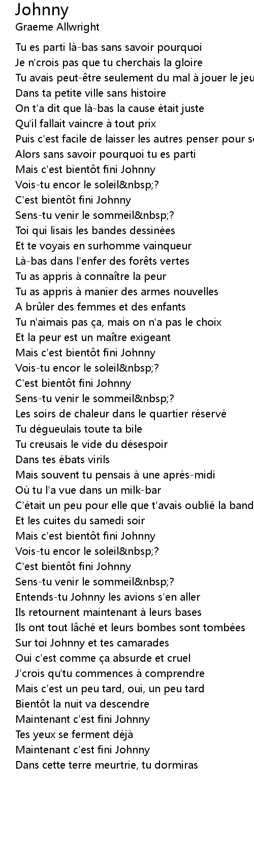 | Entends-tu Johnny les avions s'en aller | |