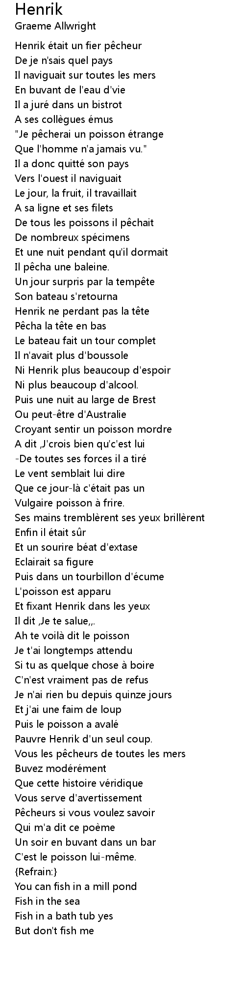 | " Je p cherai un poisson e trange | |