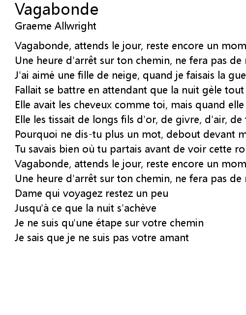 | Vagabonde, attends le jour, reste encore un moment. | |