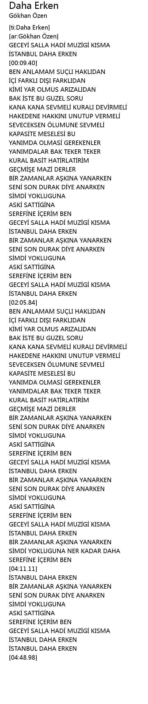 | [04:40.98] | STANBUL DAHA ERKEN |