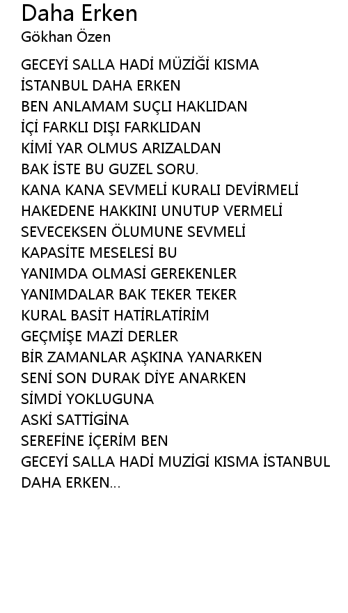 | Song | Daha Erken |
