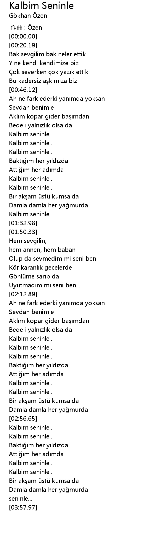 | [03:19.97] | Kalbim seninle... |