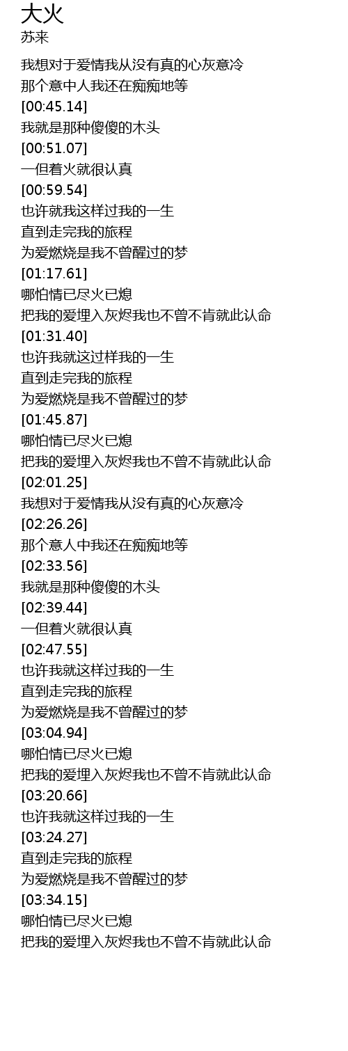 | [02:41.37] | yī dàn zháo huǒ jiù hěn rèn zhēn |