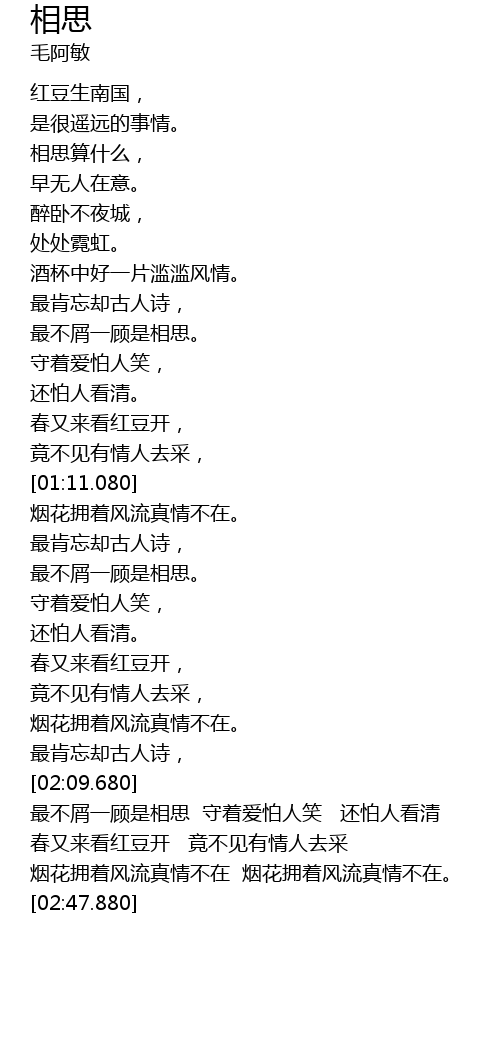 | [01:39.250] | 最不屑一顾是相思。 |