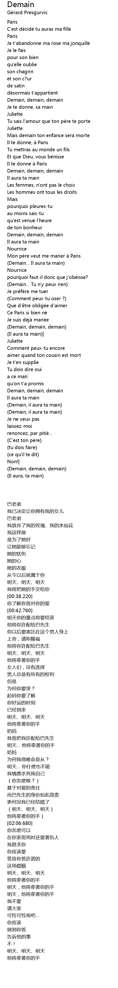 | [00:06.910] | C' est dé cidé tu auras ma fille |