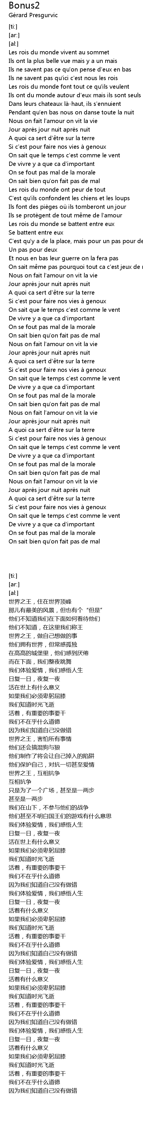 | [00:34.45] | Les rois du monde font tout ce qu'ils veulent |