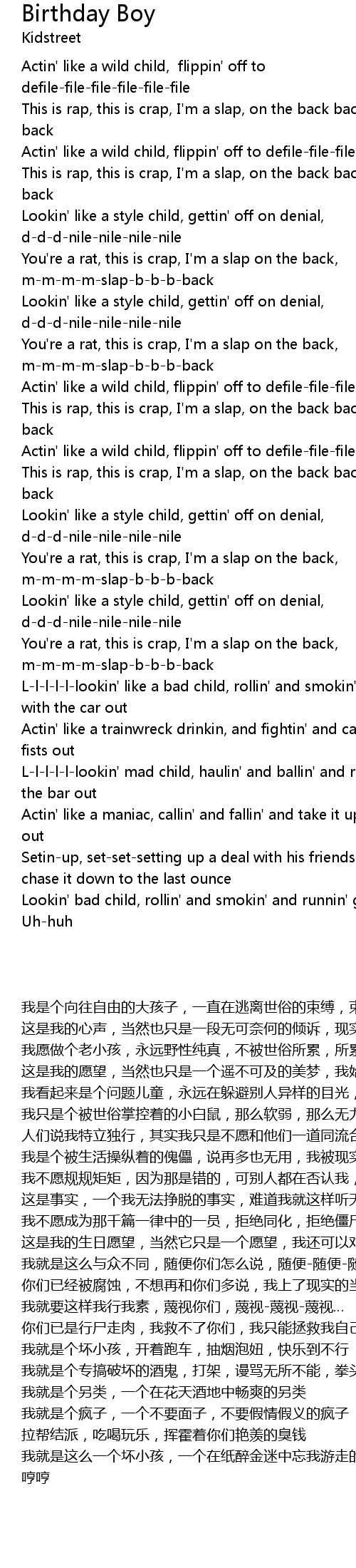 | [00:38] | Actin' like a wild child, flippin' off to defile-file-file-file-file-file |