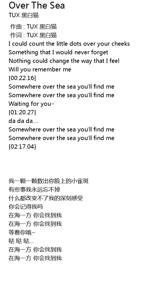 | [01:55.38] | Somewhere over the sea you'll find me |