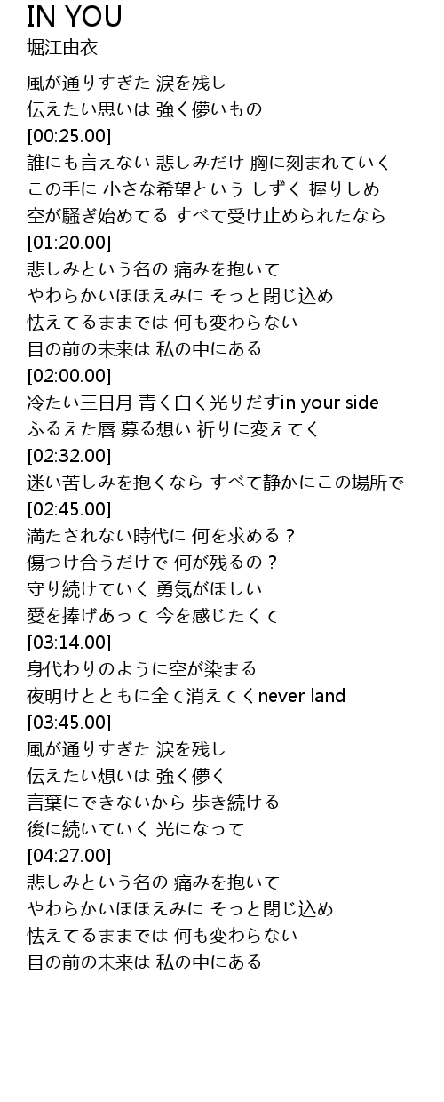 | Song | IN YOU |