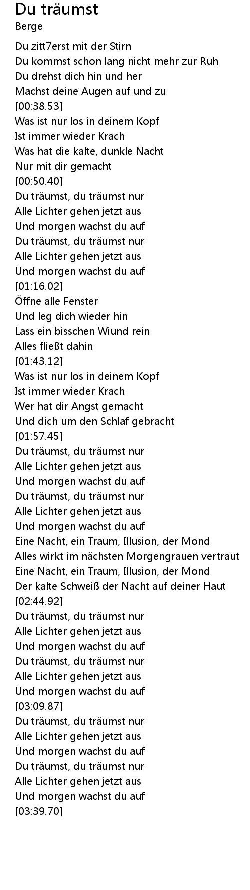 | [01:52.83] | Und dich um den Schlaf gebracht |