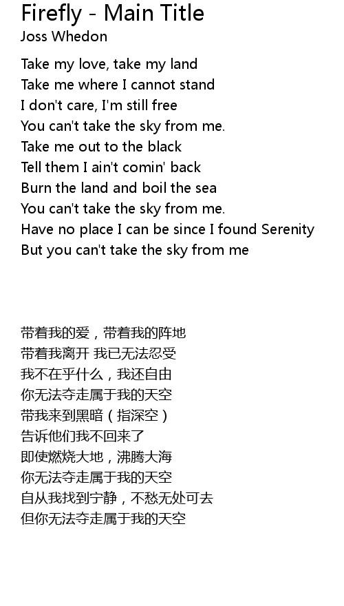| [00:24.020] | You can't take the sky from me. |
