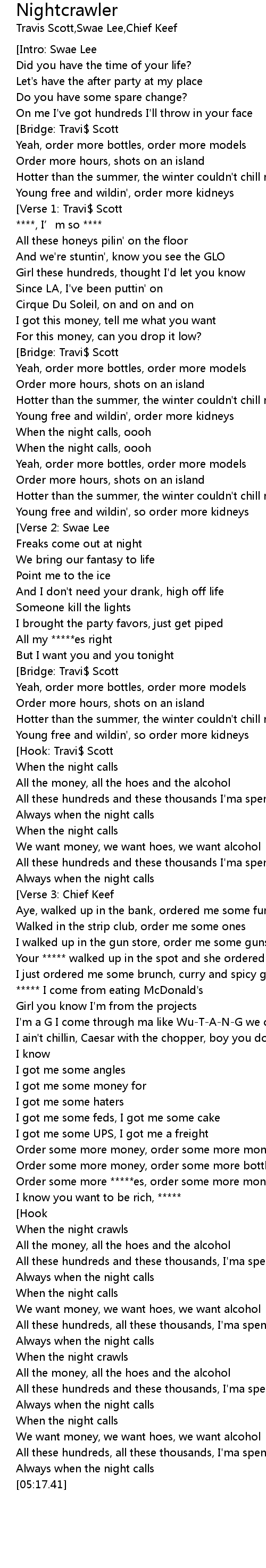 | [04:04.26] | Order some more *****es, order some more money |