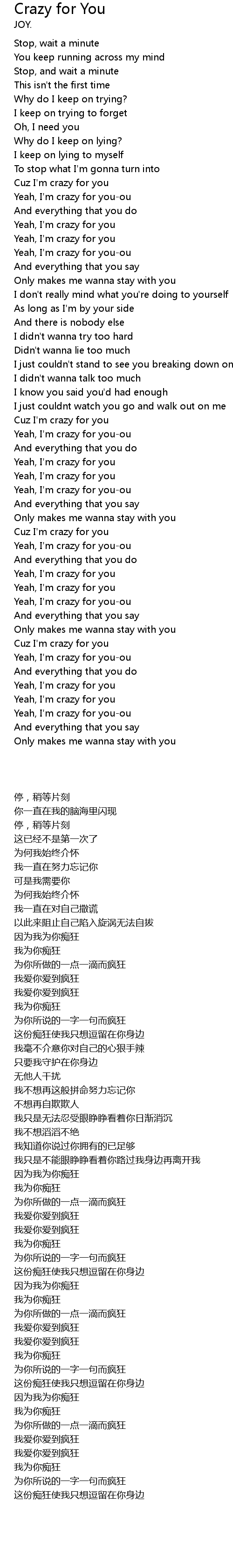 | [02:53.43] | Yeah, I'm crazy for you-ou |