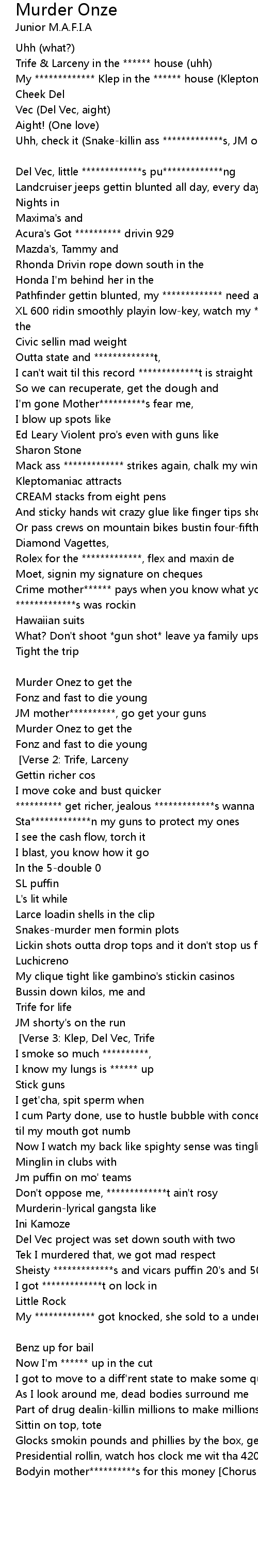 JM mother**********, go get your guns [repeat] [Verse 2: Trife, Larceny] |