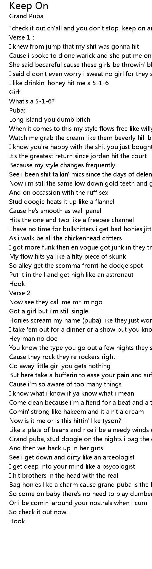 | " check it out ch' all and you don' t stop. keep on and you don' t stop" x4 | |